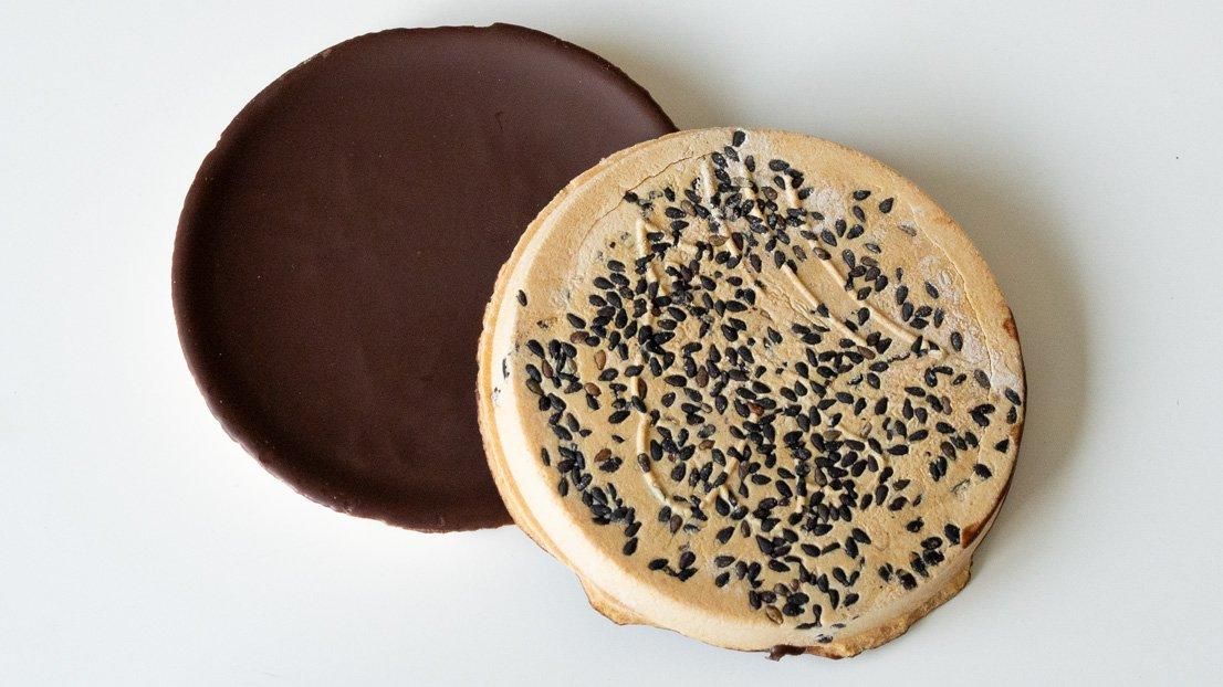 ごま煎餅に口どけの良いチョコレートをまんべんなくのせ、サクサク食感でくせになる「渋川のチョコレート煎餅 ごま」。7枚入りです。