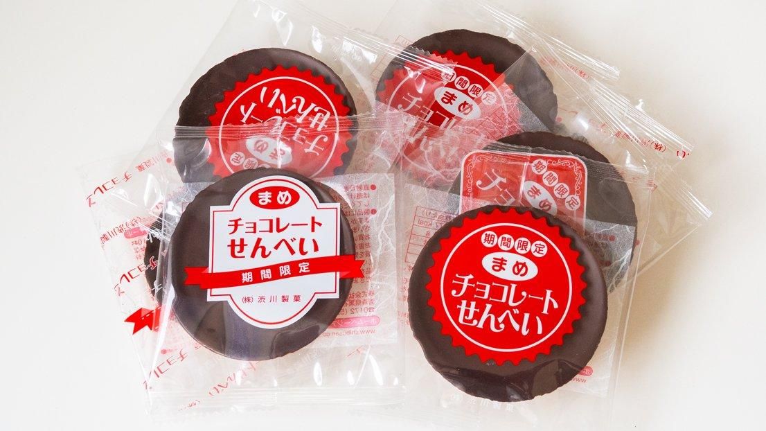 【季節商品・期間限定】サクサク食感でくせになる「渋川のチョコレート煎餅(まめ)」(7枚入)