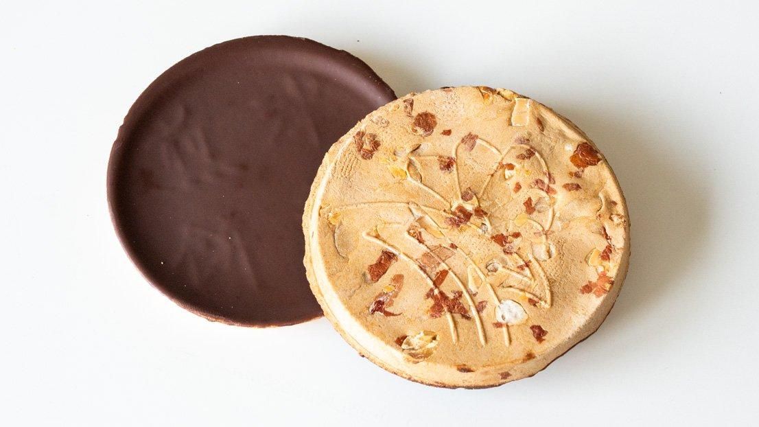 豆煎餅に口どけの良いチョコレートをまんべんなくのせ、サクサク食感でくせになる「渋川のチョコレート煎餅(まめ)」。7枚入りです。